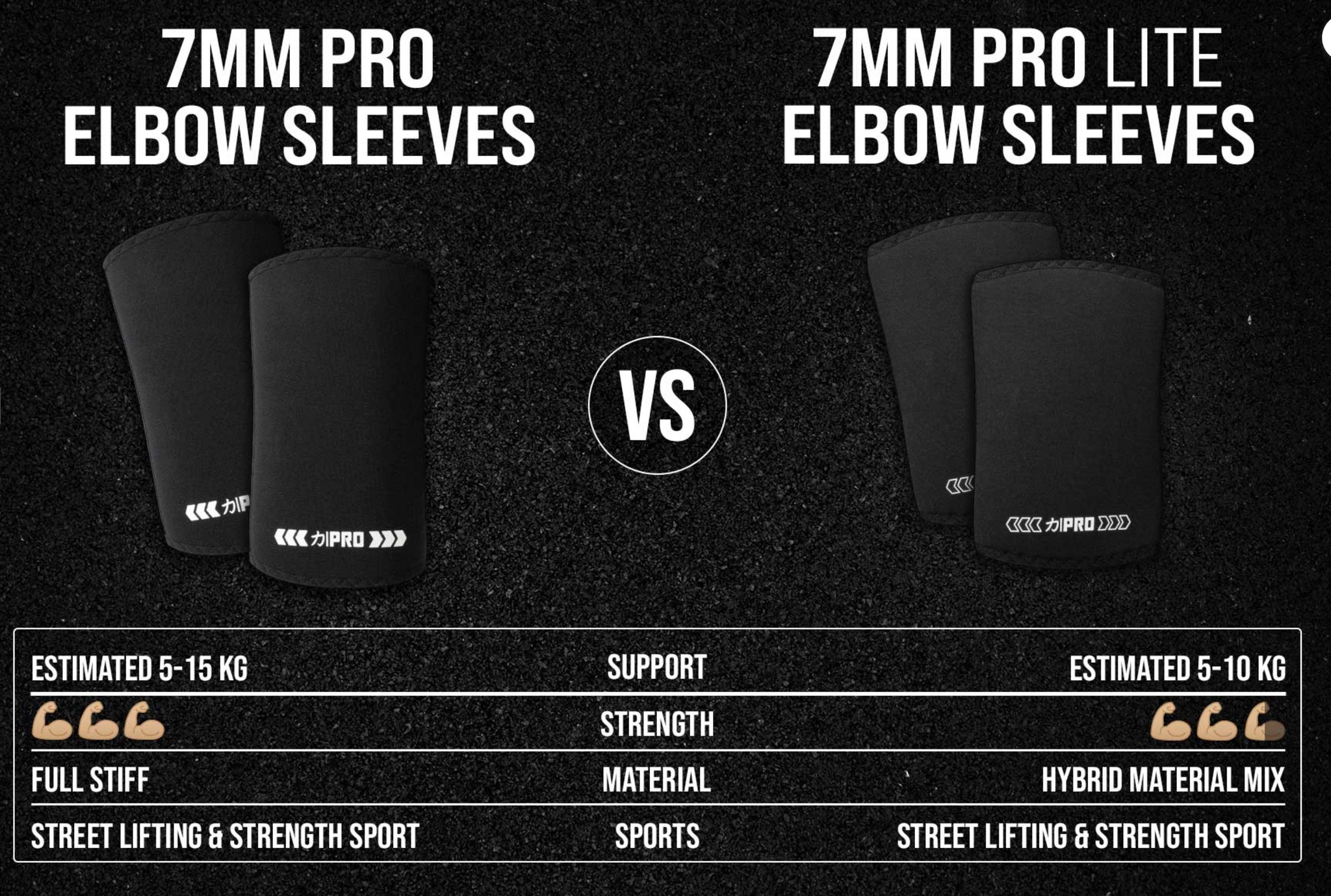 Choose Pro Sleeves for maximal support and competition days. Pick Pro Lite Sleeves if you want more comfort and ease of use during training and performance or competitions.